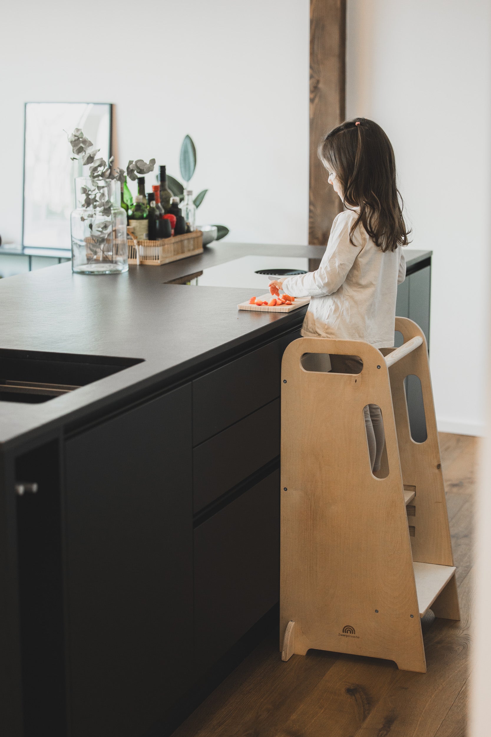 Unser Lernturm von Zwergensache ist der ideale Platz um dein Kind in die unterschiedlichsten Alltagssituationen mit einzubinden. Oftmals fehlen Kindern nur ein paar Zentimenter um an den spannenden Situationen aus dem Familienleben teilnehmen zu können.