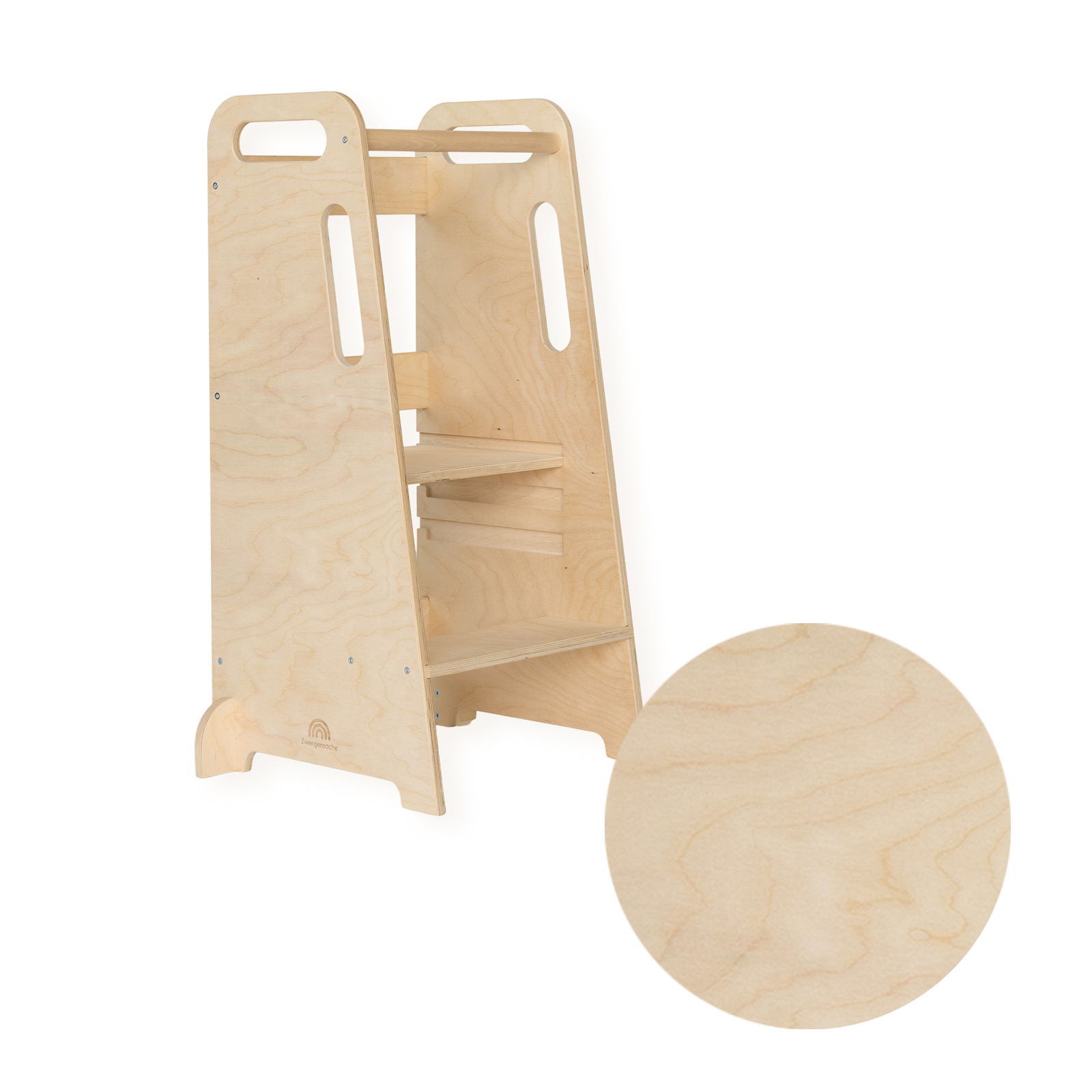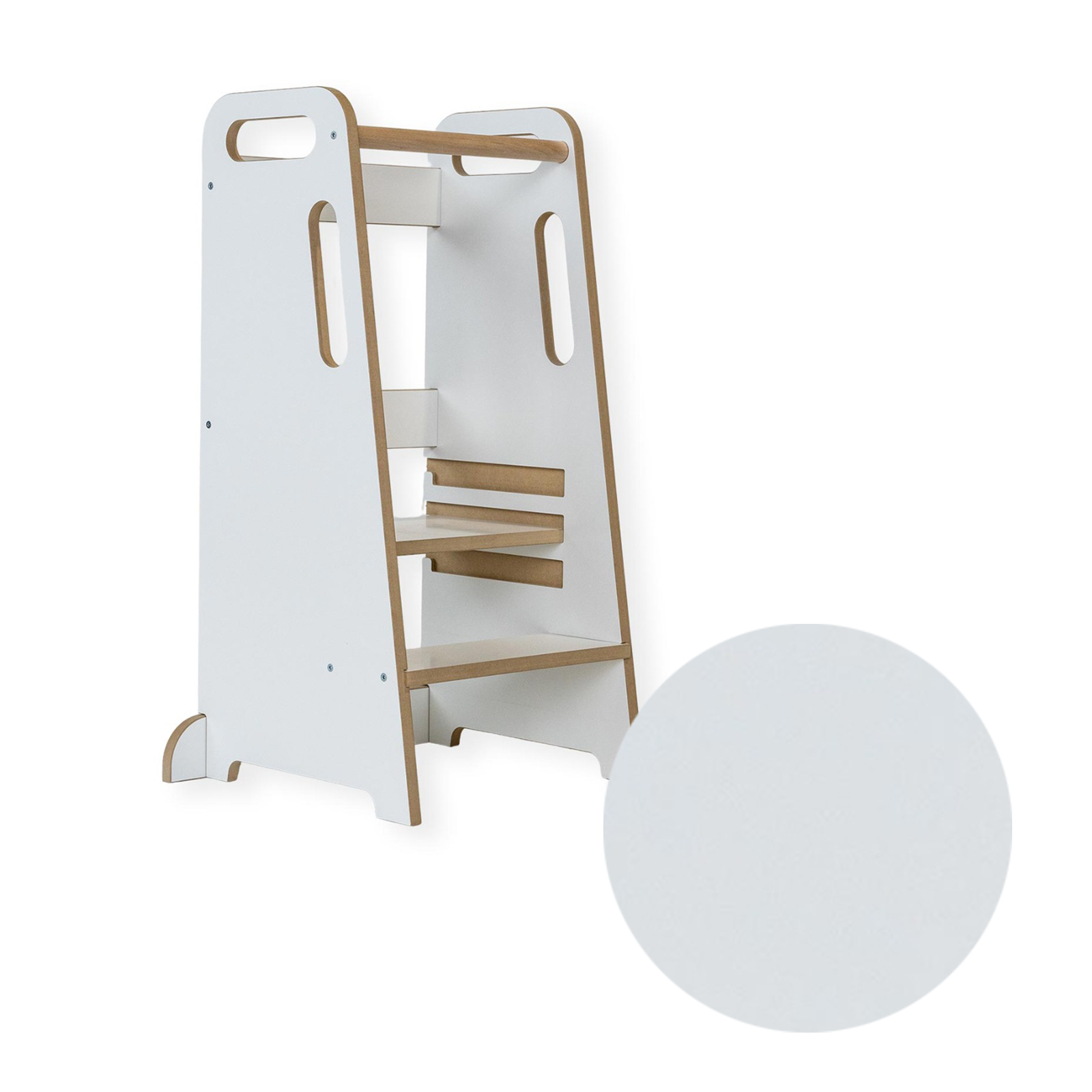 Mithilfe des Trittbretts kann dein Kind ganz leicht von alleine auf den Lernturm klettern.