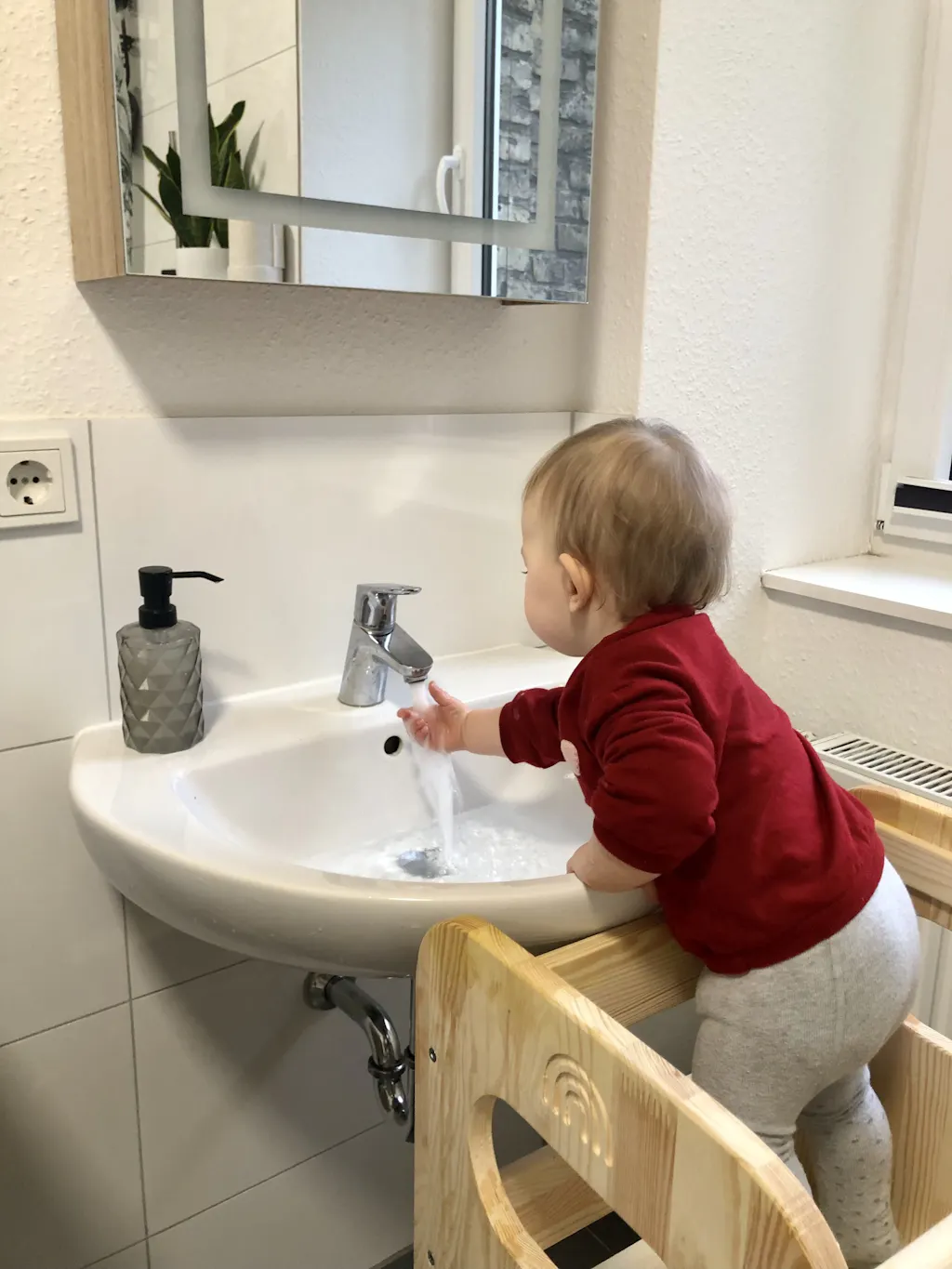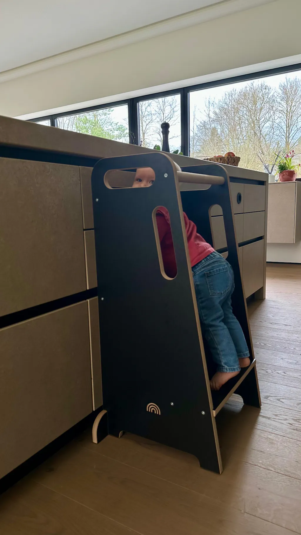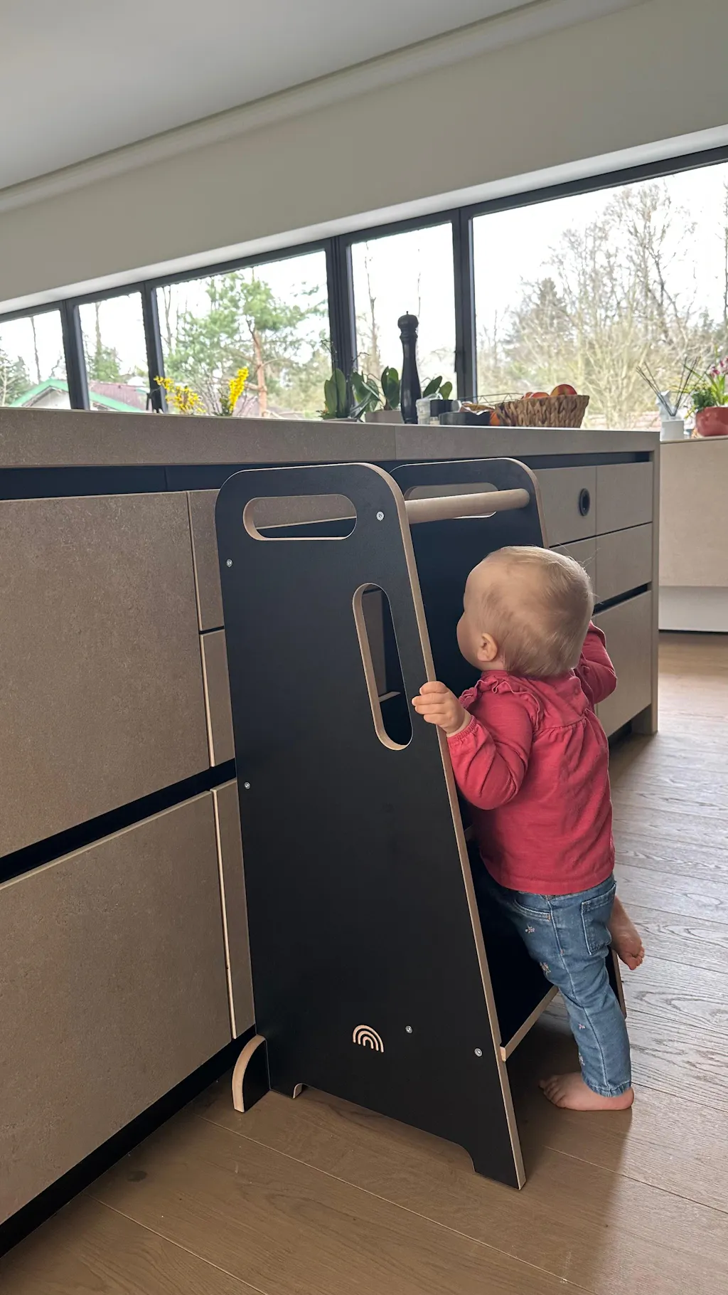 Die Griffe helfen deinem Kind beim Hochklettern auf den Lernturm und erleichtern dir das Bewegen des Küchenhelfers.